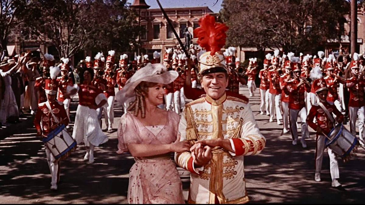 I had never seen the stage production, and it had been decades since I’d watched the 1962 Shirley Jones-Robert Preston film, co-starring Little Ronny Howard as Marian the Librarian’s younger brother—or is he? I had remembered it as a story about a musical genius who visits a small town in Iowa and convinces its citizens to start a boys’ marching band. But it turns out it’s actually about a con artist who visits a small town in Iowa and flim-flams, bamboozles, hoodwinks, and hornswoggles1 the locals into buying a bunch of band instruments and uniforms in exchange for a promise to teach all the boys to play, while secretly planning to blow out of town before the ruse is revealed.